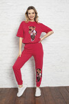 Baskılı üst modeli ve uzun alt tasarımıyla, eşofman takımı rahat kalıbı ile evde hem rahat olmak hem de güzel görünmek isteyen kadınları için, pamuk karışımlı kumaştır.